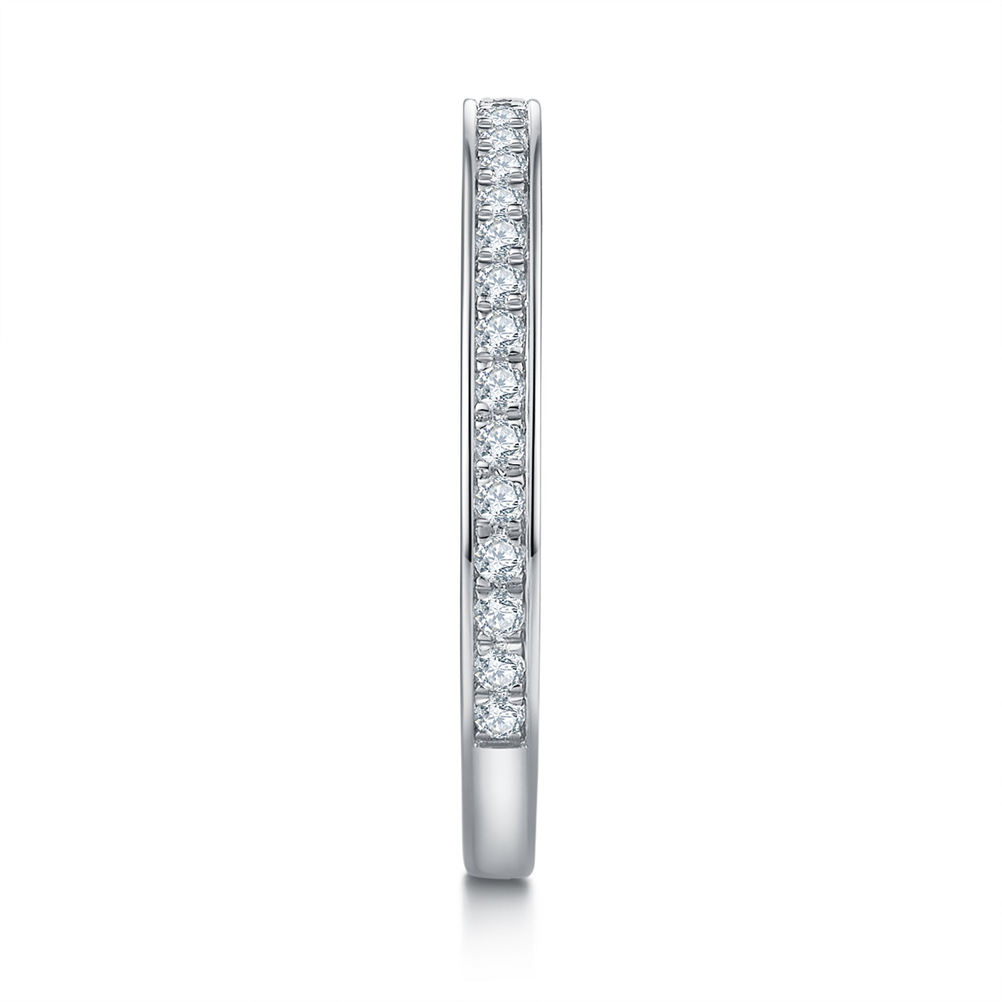 The sleek profile and continuous diamond sparkle make this band perfect for those who want understated elegance with maximum durability. Lab-grown diamonds provide the same optical and physical properties as mined diamonds while being an eco-conscious choice.